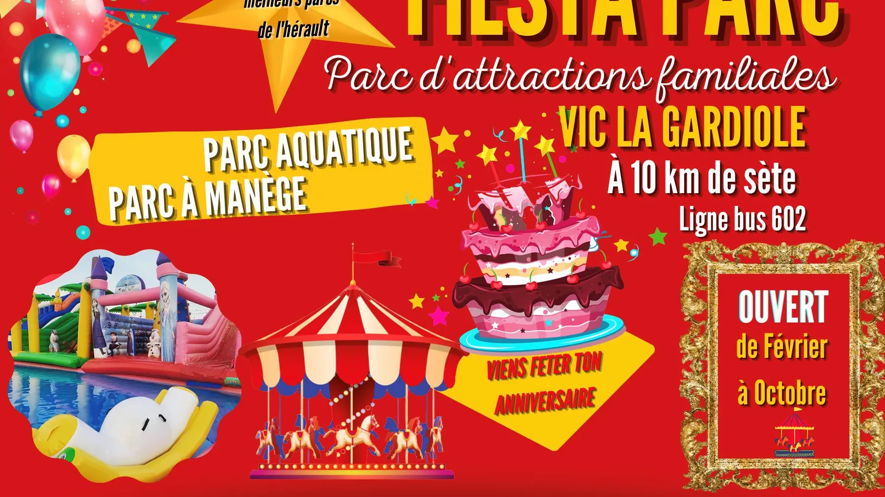 Fiesta parc ist ein familienfreundlicher Freizeit- und Wasserpark in der Gemeinde Vic la Gardiole am Bassin de Thau mit Attraktionen für Groß und Klein, der von März bis September geöffnet ist. Alle unsere Öffnungszeiten und Preise finden Sie auf unserer Website.
